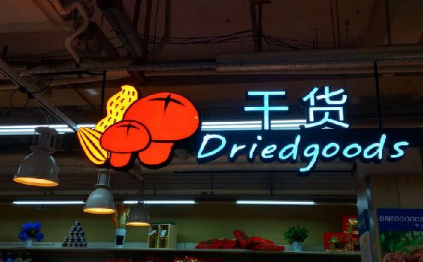 商(shāng)場或超市都是綜合型賣場,每個賣場都有成百上千種商(sh畫我āng)品,偌大(dà)的購物(wù)區如果沒有醒目的标制師識牌,如何讓消費(fèi)者快速找到需要東西有點困難,鄭州标識設計公司就為您推薦一(yī)款用于區分(f開公ēn)商(shāng)場超市售賣産品的種類的要男吊頂發光字招牌。